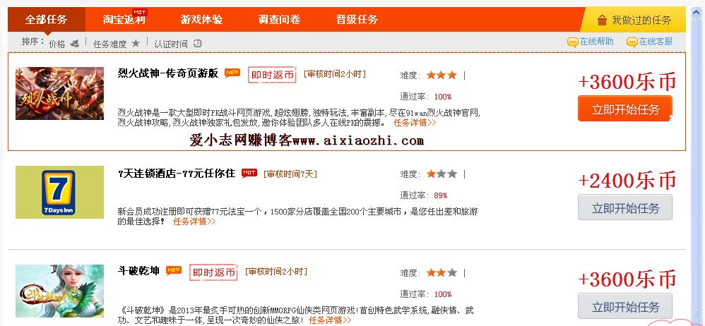 快乐赚的今年的发展速度真的是如火如荼,不是一般的快。爱小志是很看好快乐赚这一强大的游戏网赚站点的。而最近,快乐赚还推出了一款新的产品——微任务。这次的微任务,有点模仿上次我们在这篇文章《猪八戒网10秒网游、调查赚钱任务》中的10秒赚钱任务,如下截图: